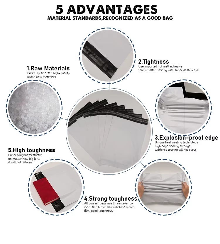 ที่พีอี โพลีเมลเลอร์โดย Zeal X ผลิตจากวัสดุโพลีเอทิลีนรีไซเคิล (PE) คุณภาพสูง ปลอดสารพิษ ไม่มีกลิ่น และกันน้ำได้ กระเป๋าแต่ละใบได้รับการออกแบบอย่างพิถีพิถันเพื่อปกป้องผลิตภัณฑ์ระหว่างการขนส่งพร้อมทั้งลดของเสียให้เหลือน้อยที่สุด โครงสร้างป้องกันการฉีกขาดและกันความชื้นช่วยให้มั่นใจได้ว่าสินค้าของคุณจะมาถึงอย่างปลอดภัยและเป็นมืออาชีพ ทำให้เป็นตัวเลือกบรรจุภัณฑ์ในอุดมคติสำหรับแบรนด์เสื้อผ้า ผู้ค้าปลีกออนไลน์ และบริษัทโลจิสติกส์ทั่วโลก