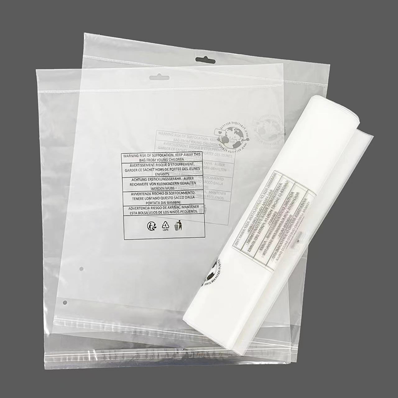 ความปลอดภัยและการปฏิบัติตามข้อกำหนด: ผลิตจาก LDPE เกรดอาหาร ถุงเหล่านี้ไม่มีกลิ่น ปราศจากพาทาเลทที่เป็นอันตราย และเป็นไปตามกฎระเบียบบรรจุภัณฑ์สากลสำหรับเครื่องแต่งกาย ลักษณะน้ำหนักเบายังช่วยลดต้นทุนการขนส่งและการปล่อยก๊าซคาร์บอนอีกด้วย